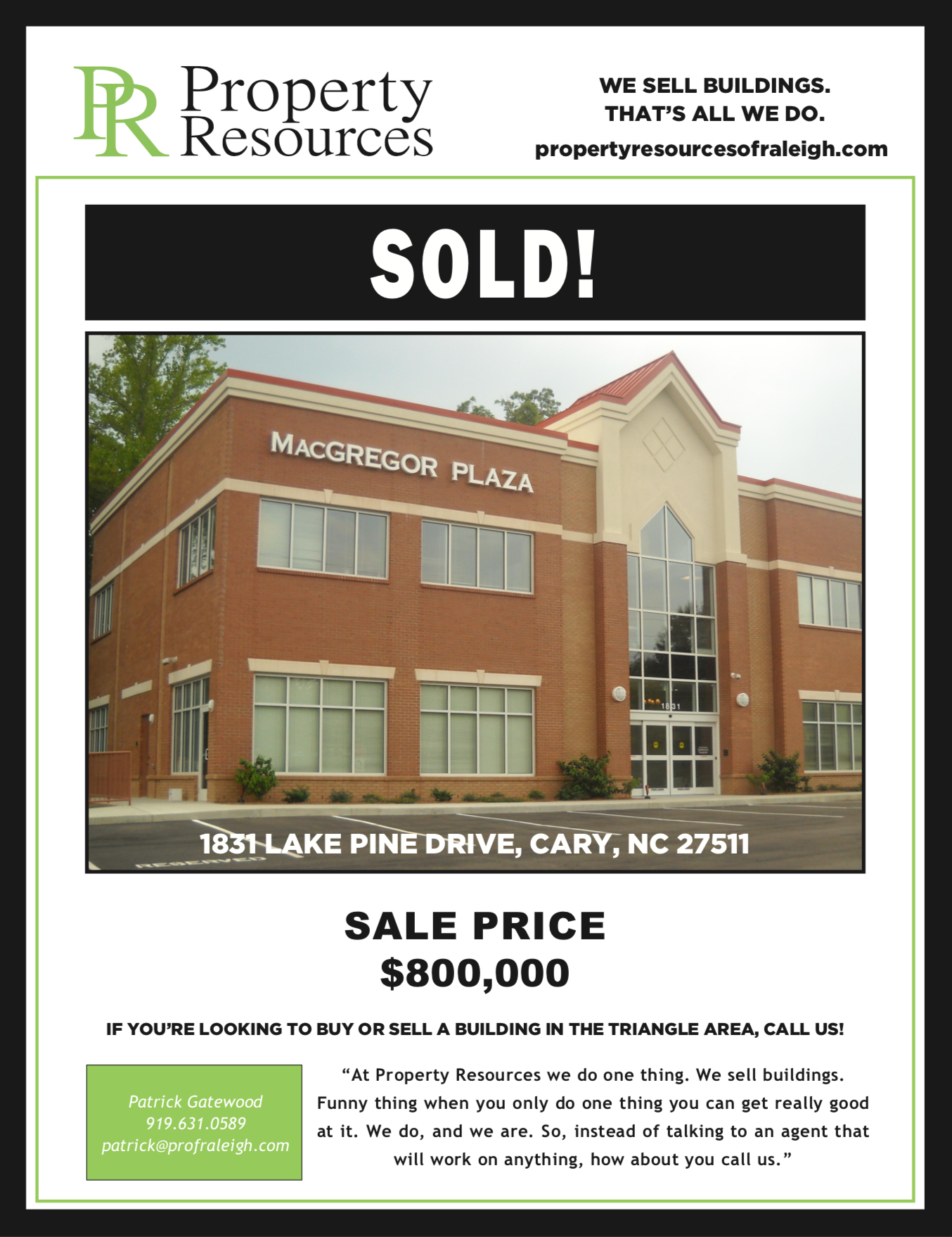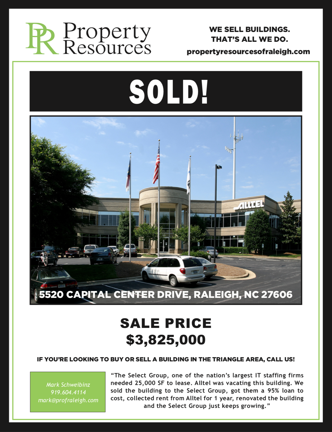 Owned the largest commercial real estate firm in the Triangle and at 78 employees, I sold that firm to CBRE.